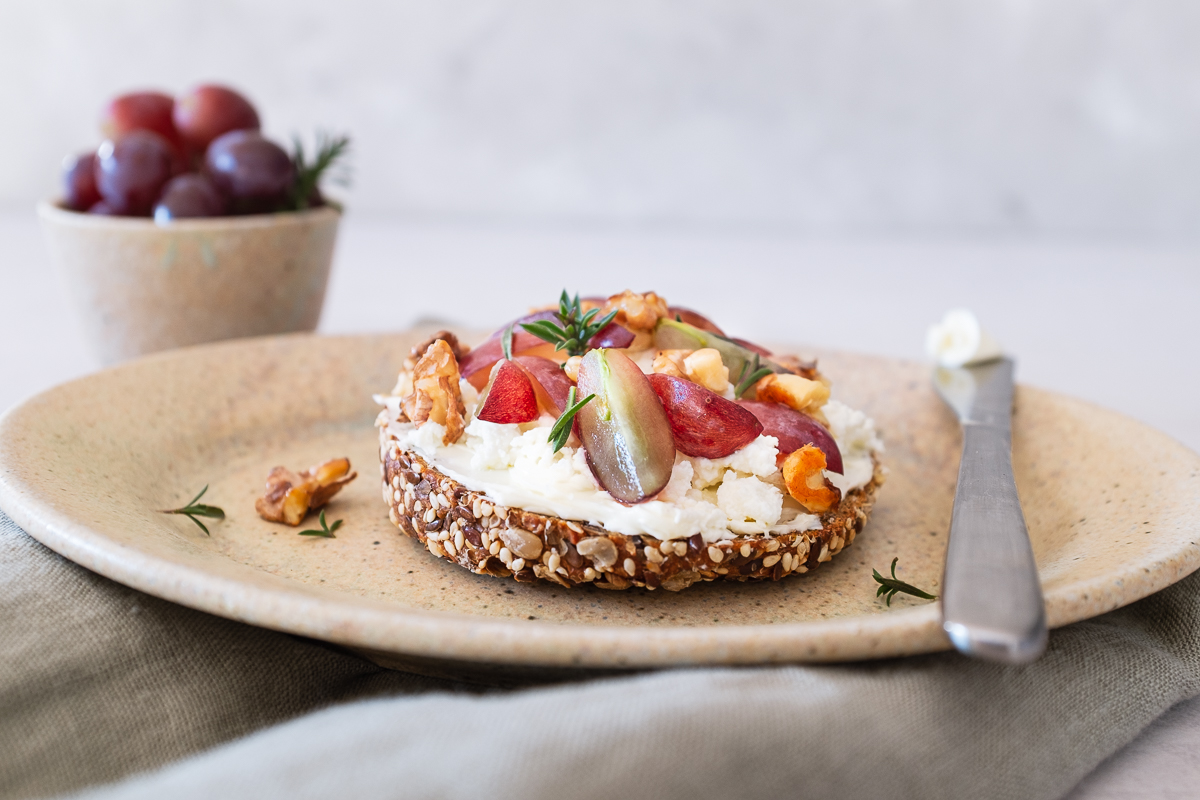Titel-Foto: Butterbrot mit-Ziegenfrischkäse und Weintrauben Walnuss-Topping